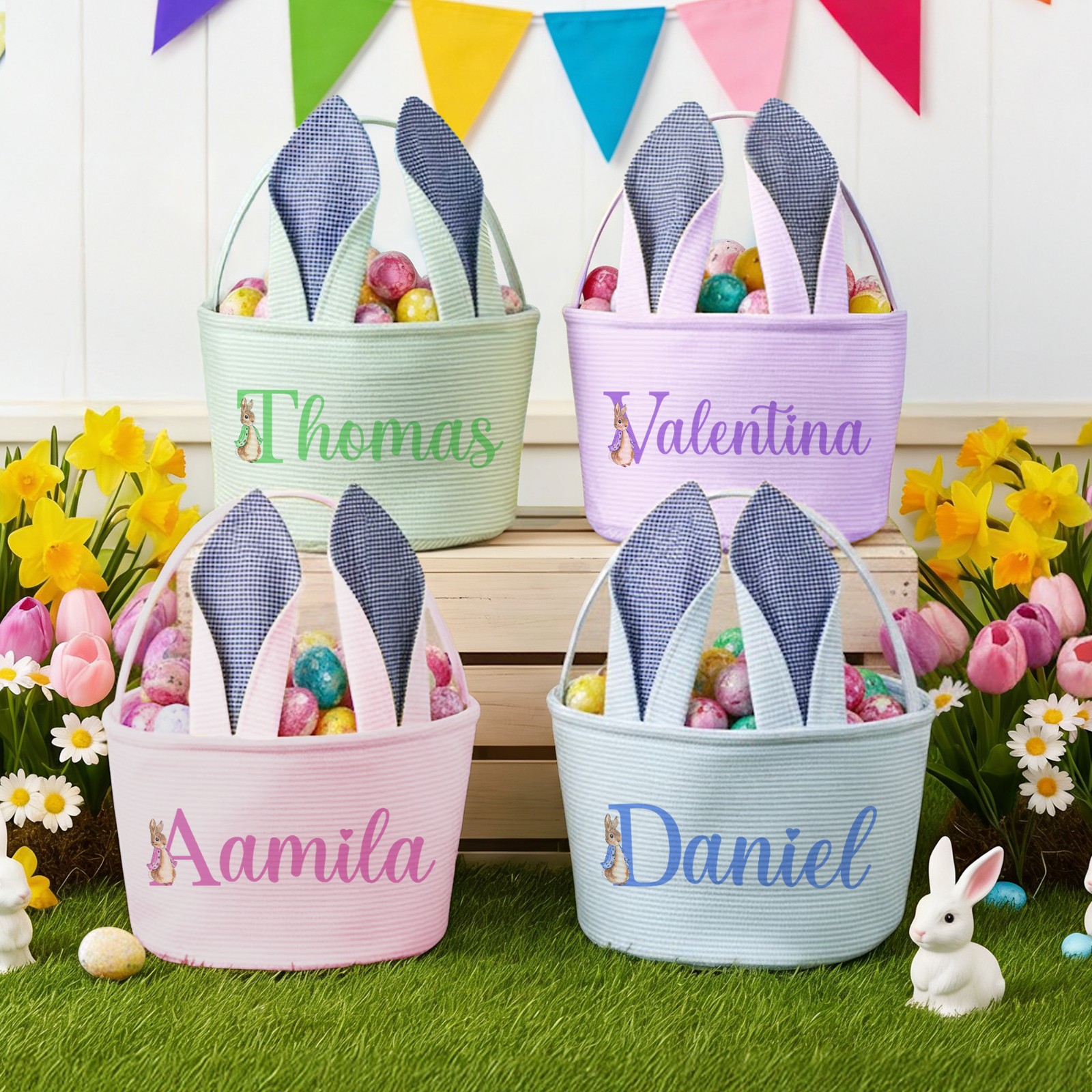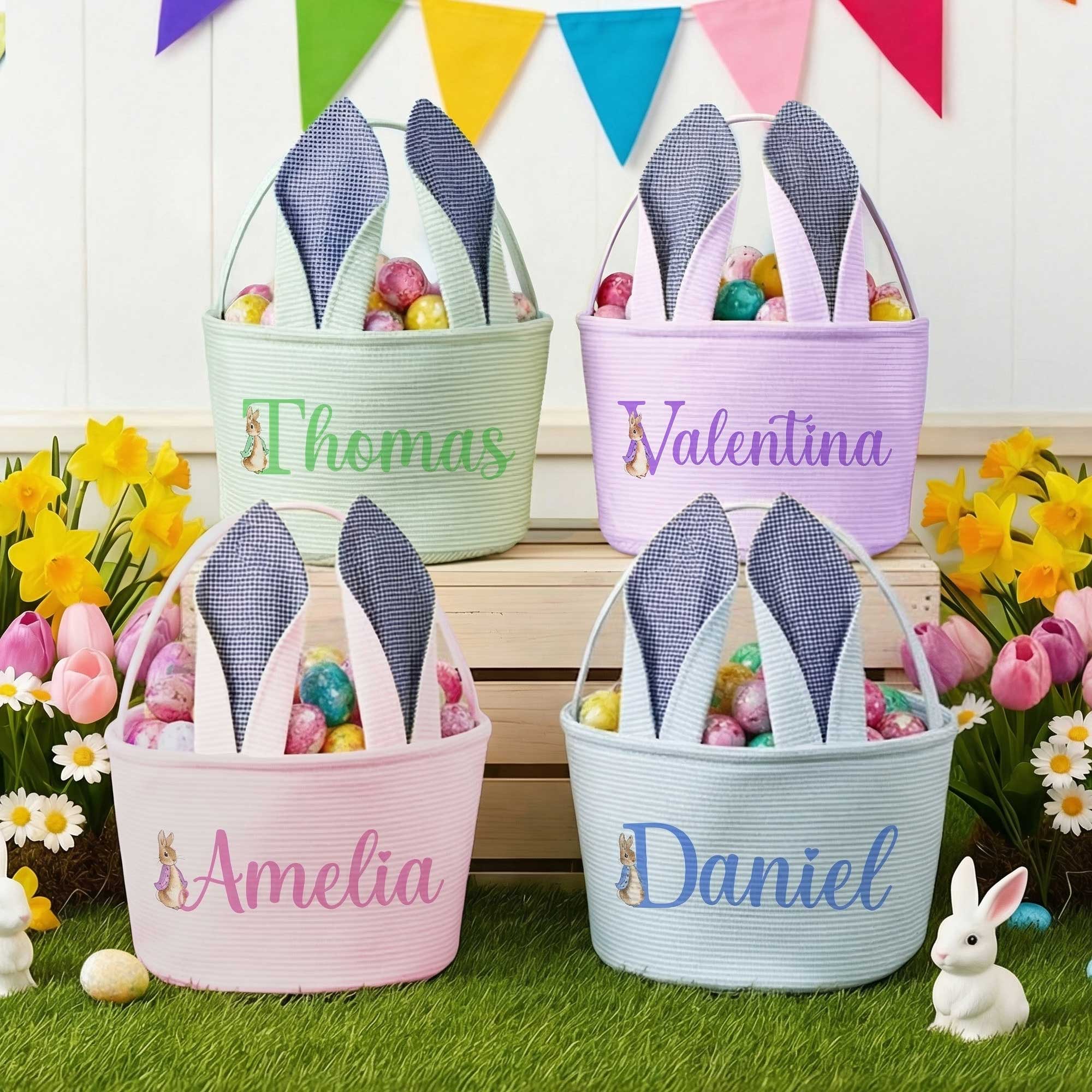 Custom Name Peter Rabbit Alphabet Easter Basket with Bunny Ears