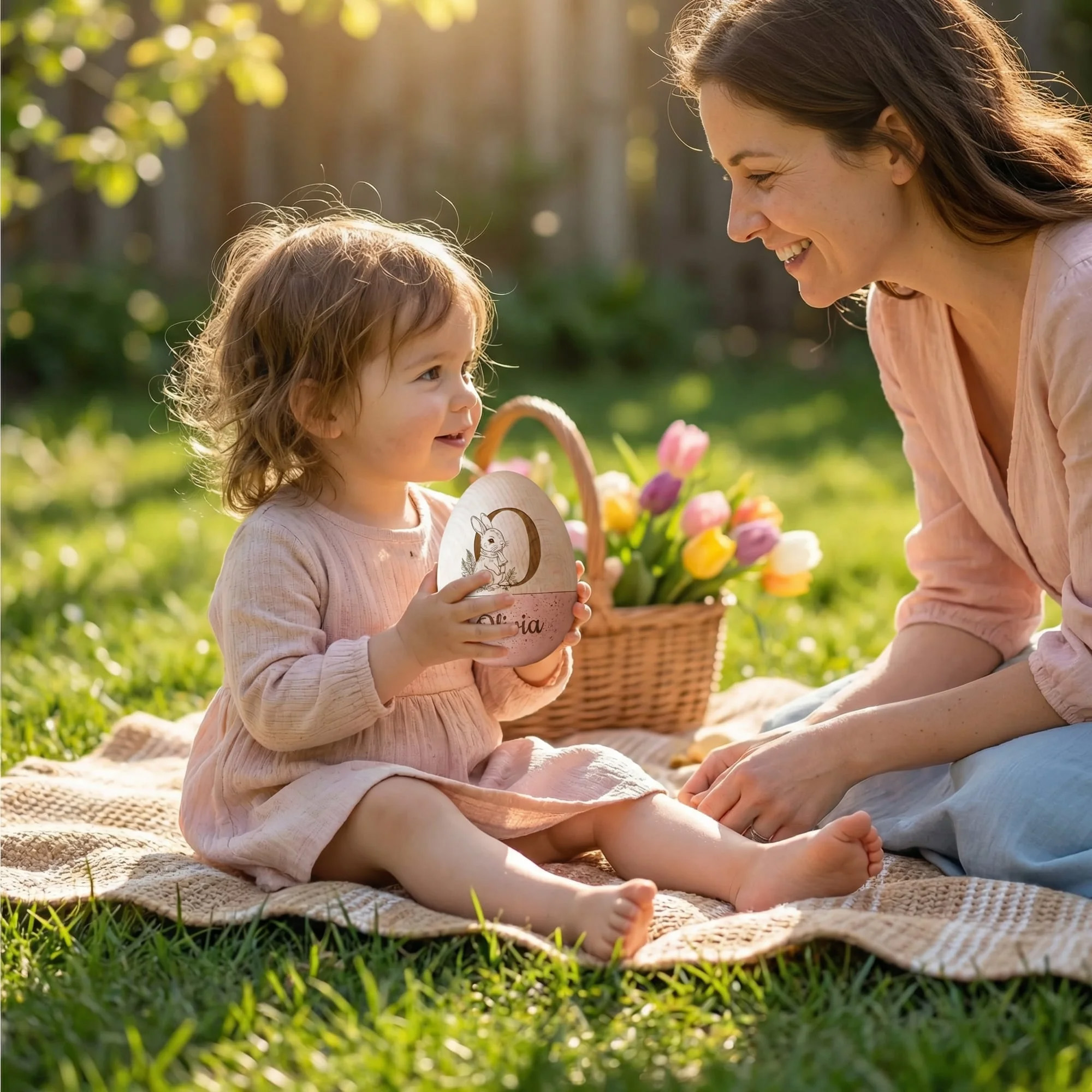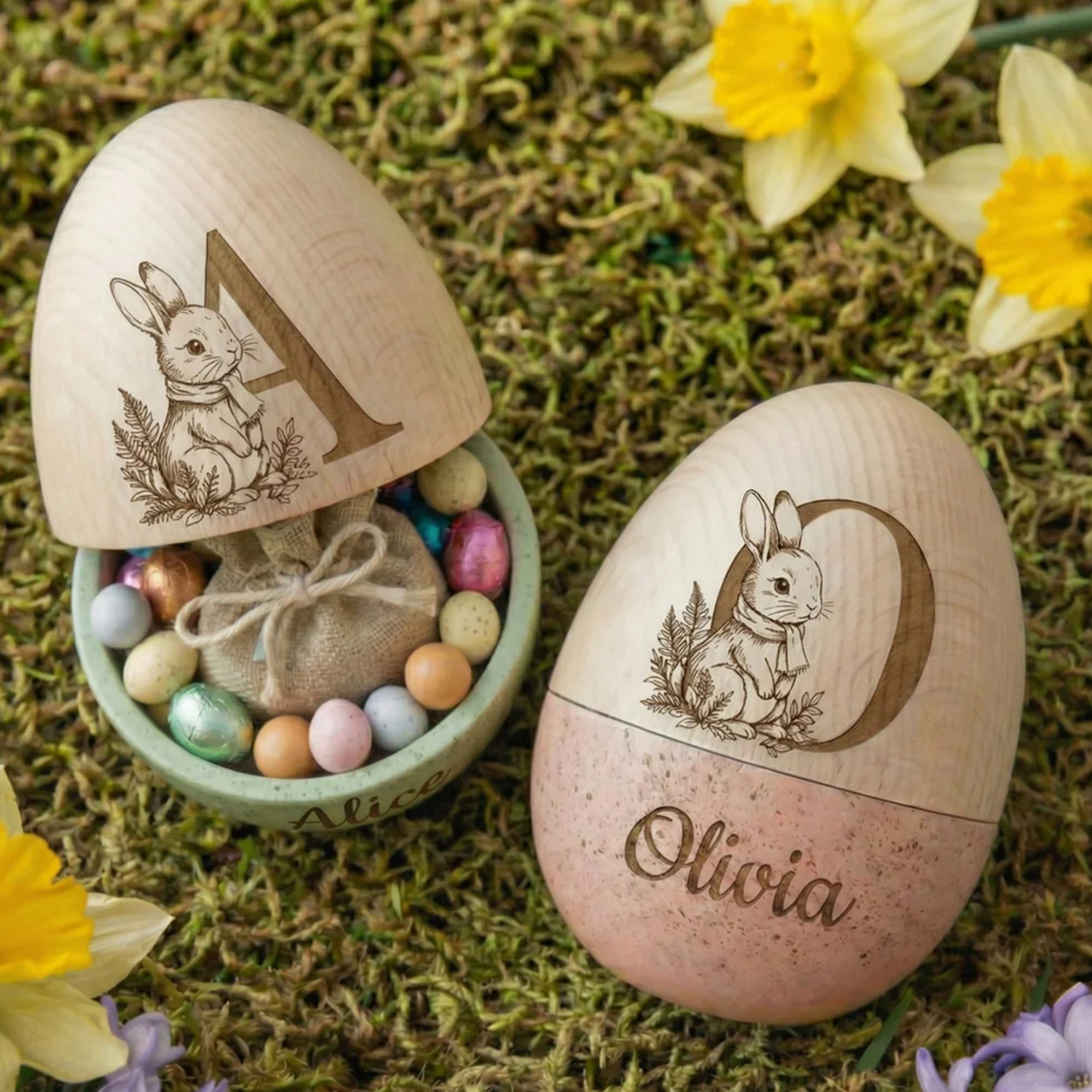 This personalized egg is a fantastic addition to any Easter egg hunt! This custom wooden Easter egg features an openable design and can be filled with candy, small toys, or surprise gifts. It is the ideal Easter basket stuffer, Easter egg hunt prop, or a baby's first Easter souvenir, making it a cherished treasure for your little ones.