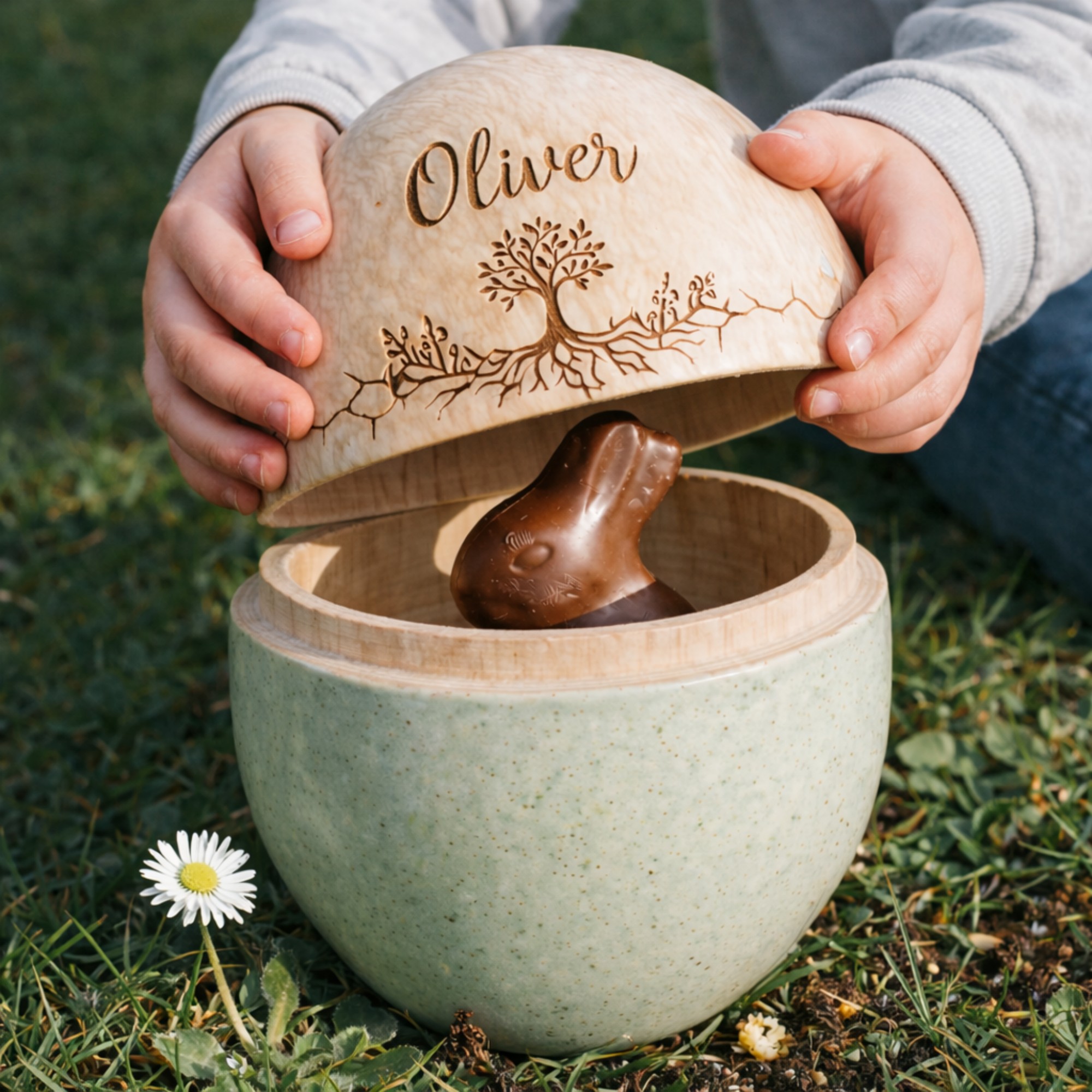 Handcrafted from smooth, natural wood with a rounded egg shape and gentle sanded finish, each egg is safe for little hands and built to last. The decorative cut-out adds playful charm and makes the egg fillable—perfect for tucking small treats, notes, or keepsakes inside. Each egg measures approximately 12cm in height and easily opens at the centre to create a fillable egg. The inner diameter is 6cm, perfect to hide surprise or choose to add one of our little hollow eggs painted to match.